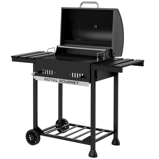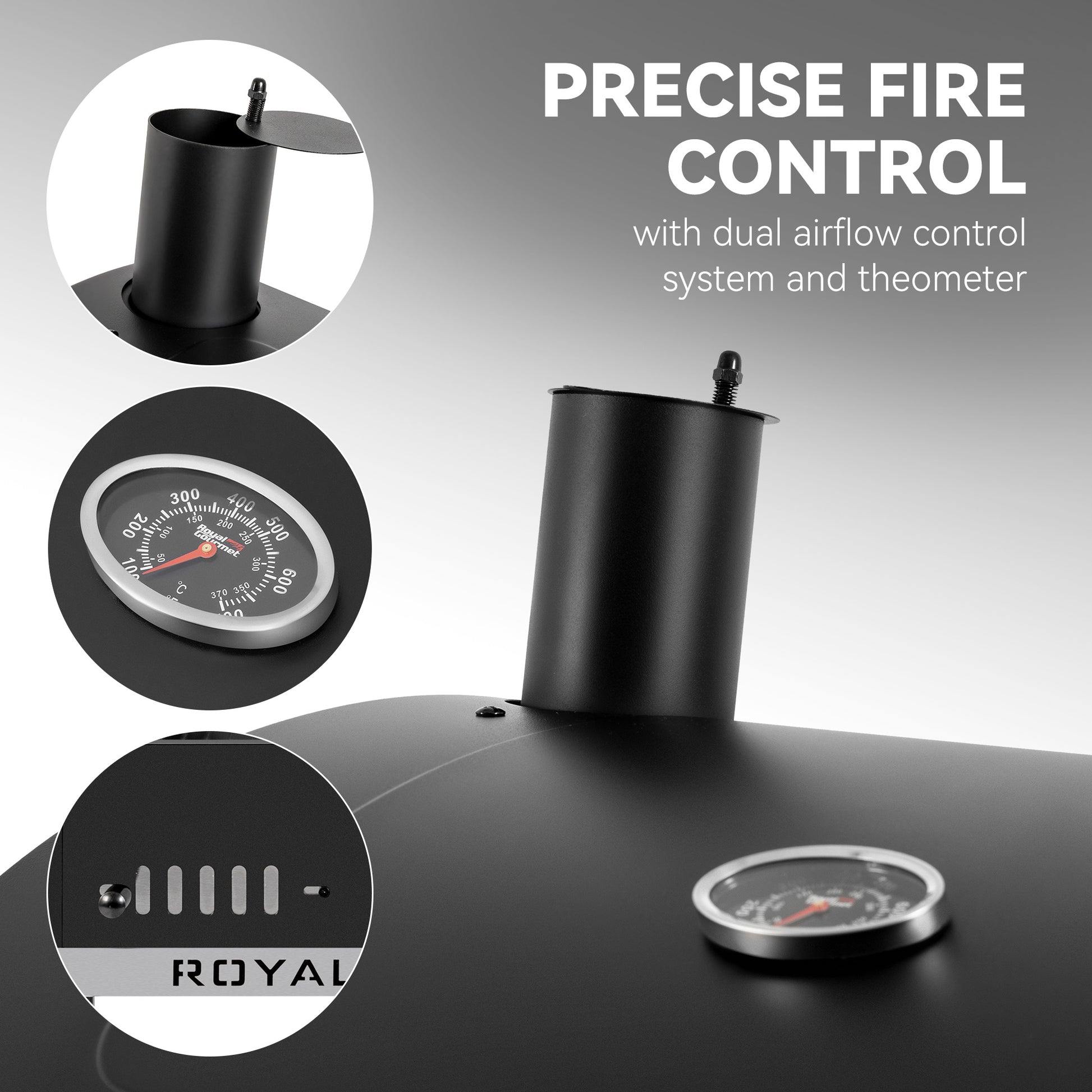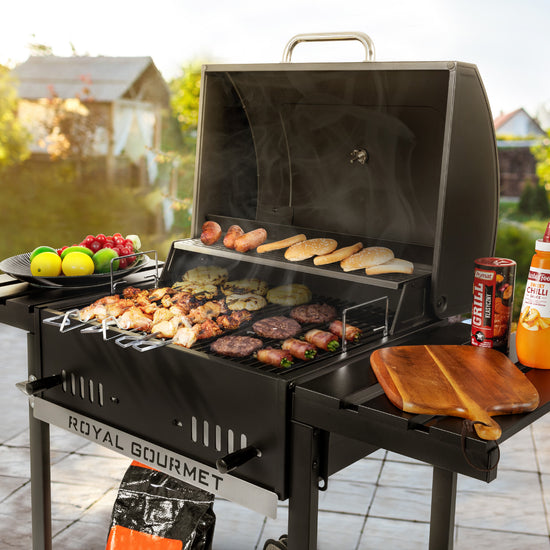 Whether you're a seasoned pitmaster or a beginner, Royal Gourmet CD1824ET 24-Inch Movable Charcoal BBQ Grill is a great option for you to work your magic and create excellent memories. Grilling up 24 burgers at once, the 360 sq. in. main cooking area heats up fast and evenly, while the 101 sq. in. warming rack area keeps food warm. It does the job well to sear steaks to perfection, ensure meat stays juicy, and roast vegetables with smoky flavor. Temperature control is a breeze thanks to a built-in thermometer, an easy-to-adjust charcoal pan, as well as an advanced air circulation system including 2 adjustable air vents and a stack. No more hesitation. It’s a purchase you won’t regret.