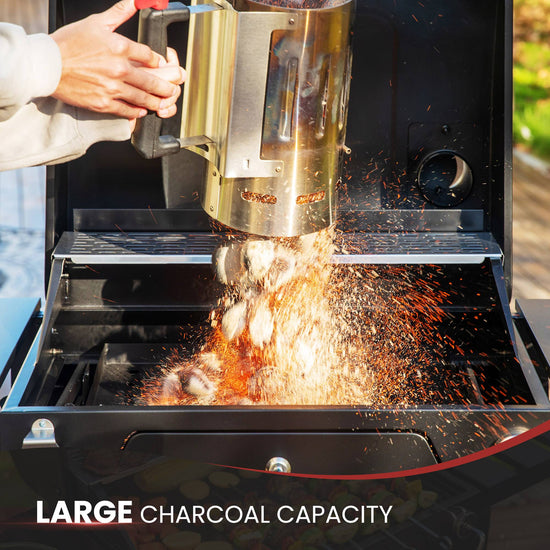 - Easy to add coals: with the charcoal access door at the front, coals can be quickly added during grilling with minimum loss of heat