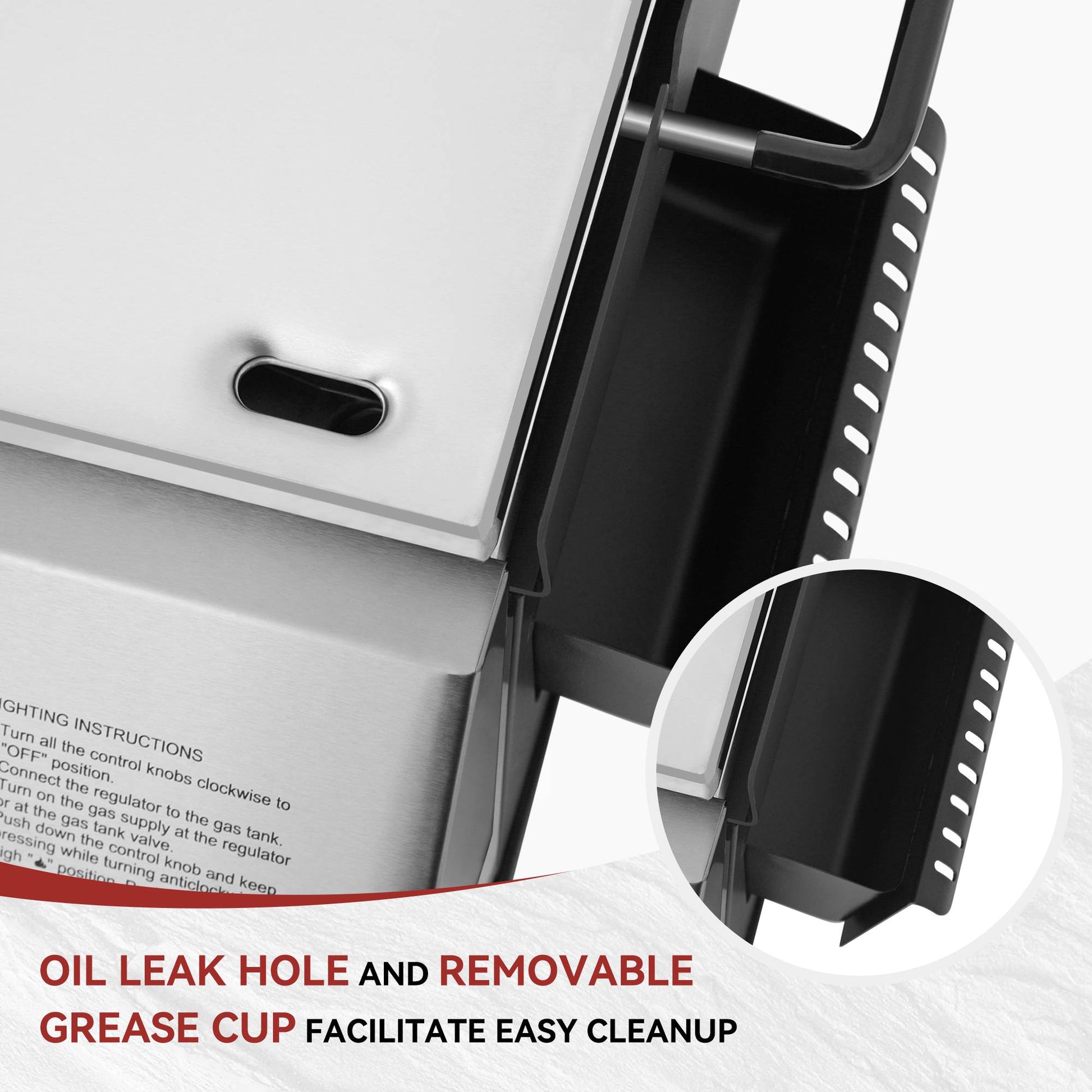 - Oil leak hole and removable grease cup facilitate easy cleanup
