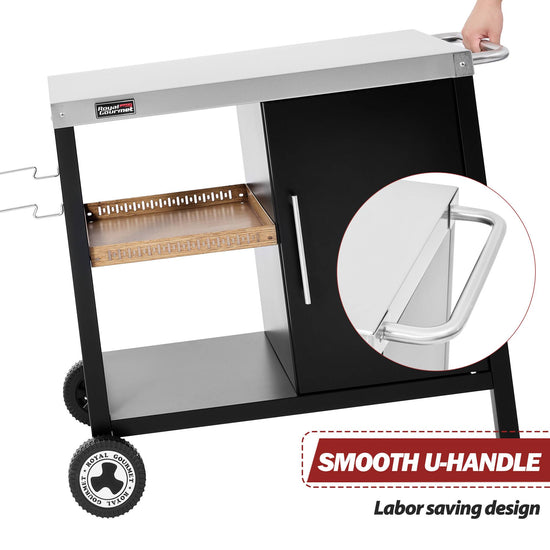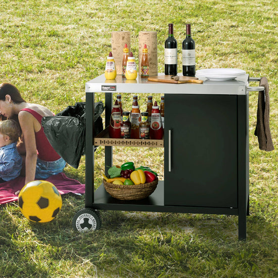 The multifunctional Royal Gourmet® PC3402S Movable 3-Tier Dining Cart with Removable Trash Bag Holder gives you an idea of how convenient cooking can be by serving your kitchen needs on its 34" L x 20" W stainless steel tabletop, like preparing food aside when cooking. It features a robust steel structure with 4 sturdy tube legs that can either move around like a trolley or stay stable on uneven terrains. Moreover, the 2 extra shelves and 1 ample cabinet help to store food materials, seasonings, and other cooking utensils, which do make almost everything within arm’s reach - there’s even a handy removable holder for trash bag! Try to test the Royal Gourmet PC3402S, won't disappoint!