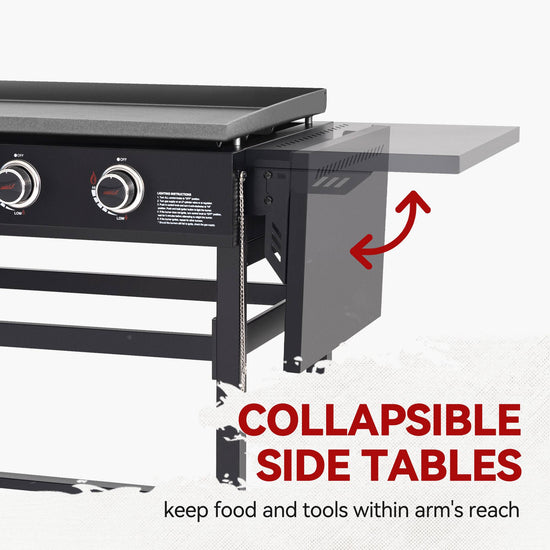 - Collapsible Side Tables: Two collapsible side tables provide additional space for food preparation and storage as needed, enhancing flexibility.