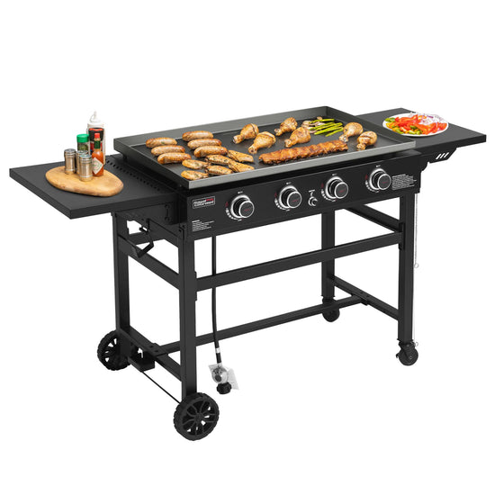 Unlock all possibilities you may expect for Royal Gourmet® GB4001B-N 4-Burner Propane Gas Griddle. Boasting a spacious 766 sq. in. cooking area and a total cooking power of 52,000 BTU, it's an ideal companion for your upcoming outdoor BBQ party. And if you are worrying about the cleanup after cooking? Fret not, as our grease management system is here to tackle that concern effectively. Don't delay any further – seize the opportunity and elevate your outdoor cooking experience with this exceptional griddle!