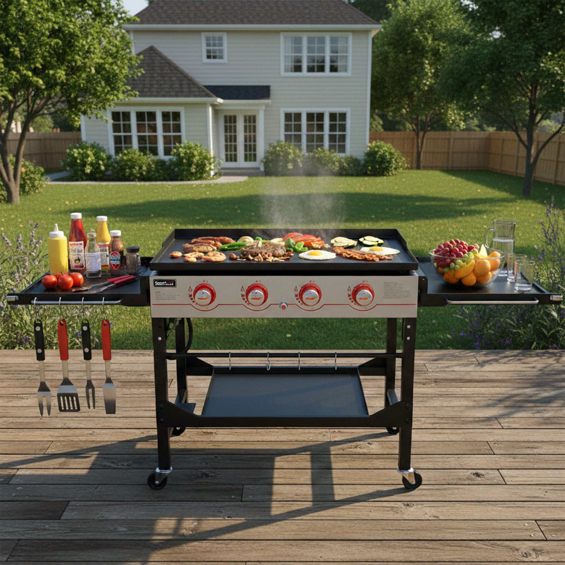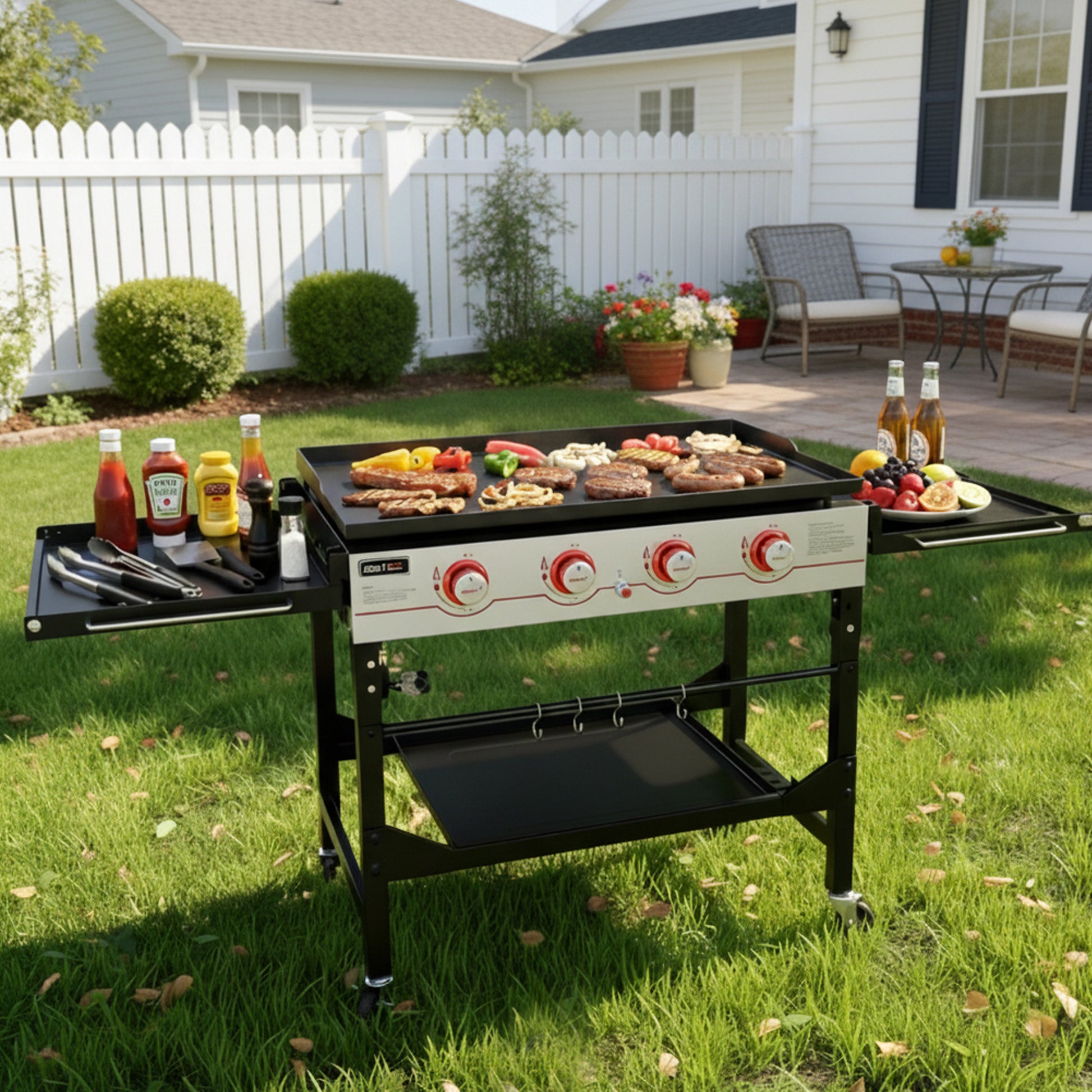 2.?Spacious Cooking Surface: 748?square inches cooking area with 7 gauge pre-seasoned?steel flat?top?caters for large events or outdoor activities.