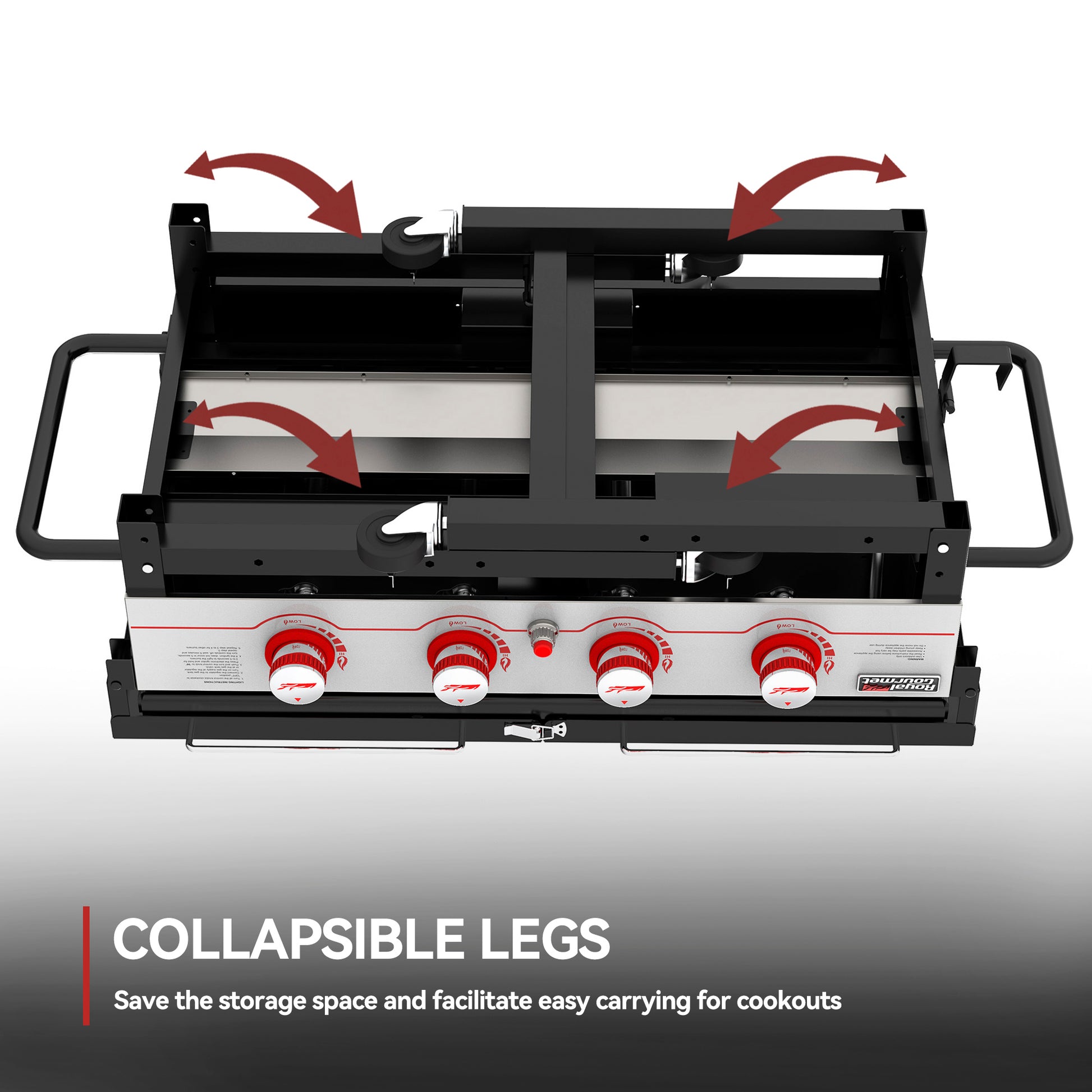 Come along and show you the best portable prep and cook with?Royal Gourmet? GB4000F 36-Inch?Flat Top Gas Griddle while you are on the road.?Great importance and attentions must be attached to our cutting-edge design of collapsible side shelves and legs for indeed outdoor cooking convenience. Time for another pickup?truck cookout, the sun is shining and the weather is getting warm. Invite a group of friends and get surrounded by the center of your griddle. Explore the infinite possibilities with Royal Gourmet?.