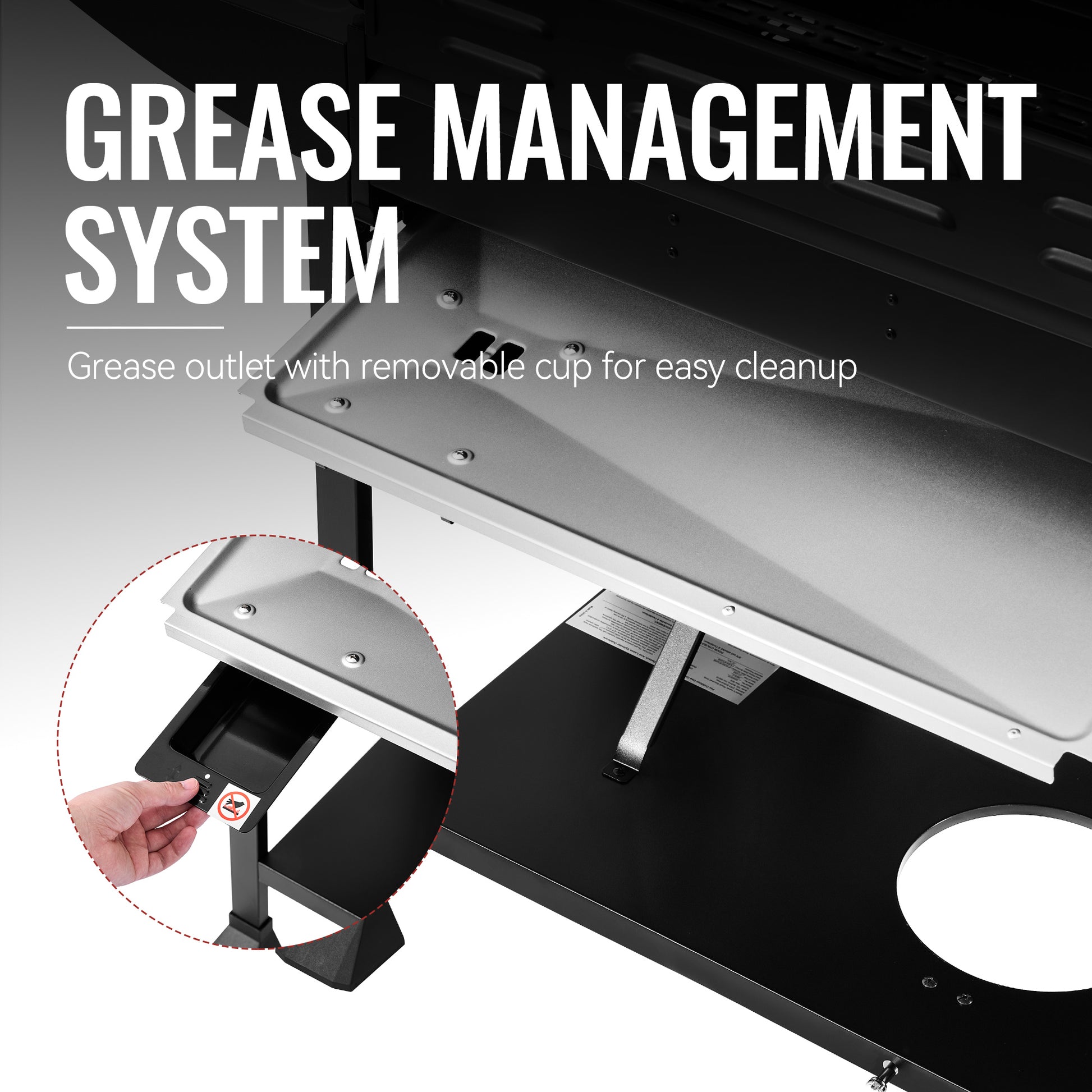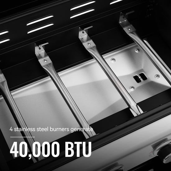 2. Consistent & Even Heat: With an output of 49,000 BTU in total, five stainless steel burners deliver consistent and even heat across the grilling area. Porcelain-enameled flame tamers provide even heat distribution.