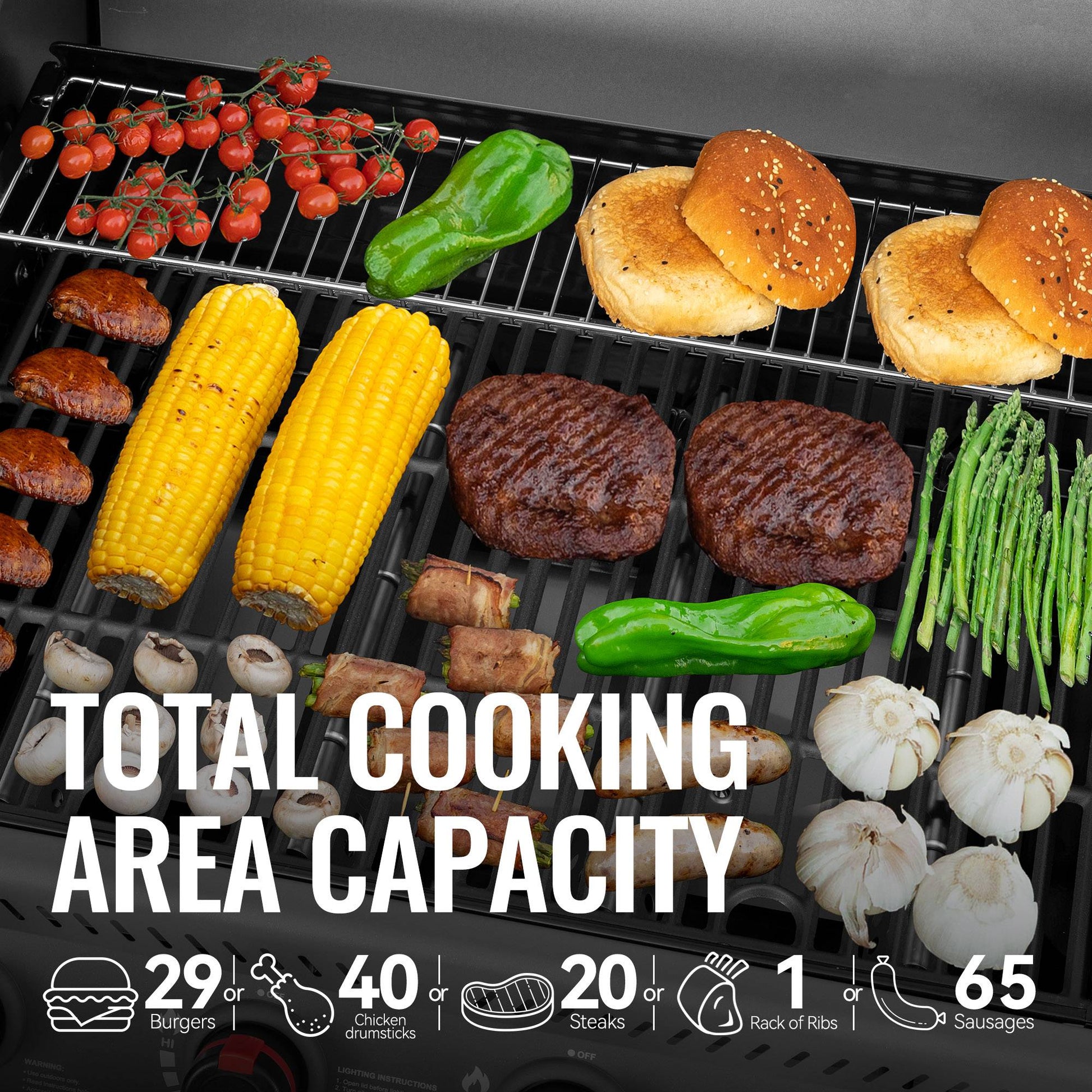 - 483 sq. in. porcelain-enameled cast iron cooking grates boast exceptional heat distribution