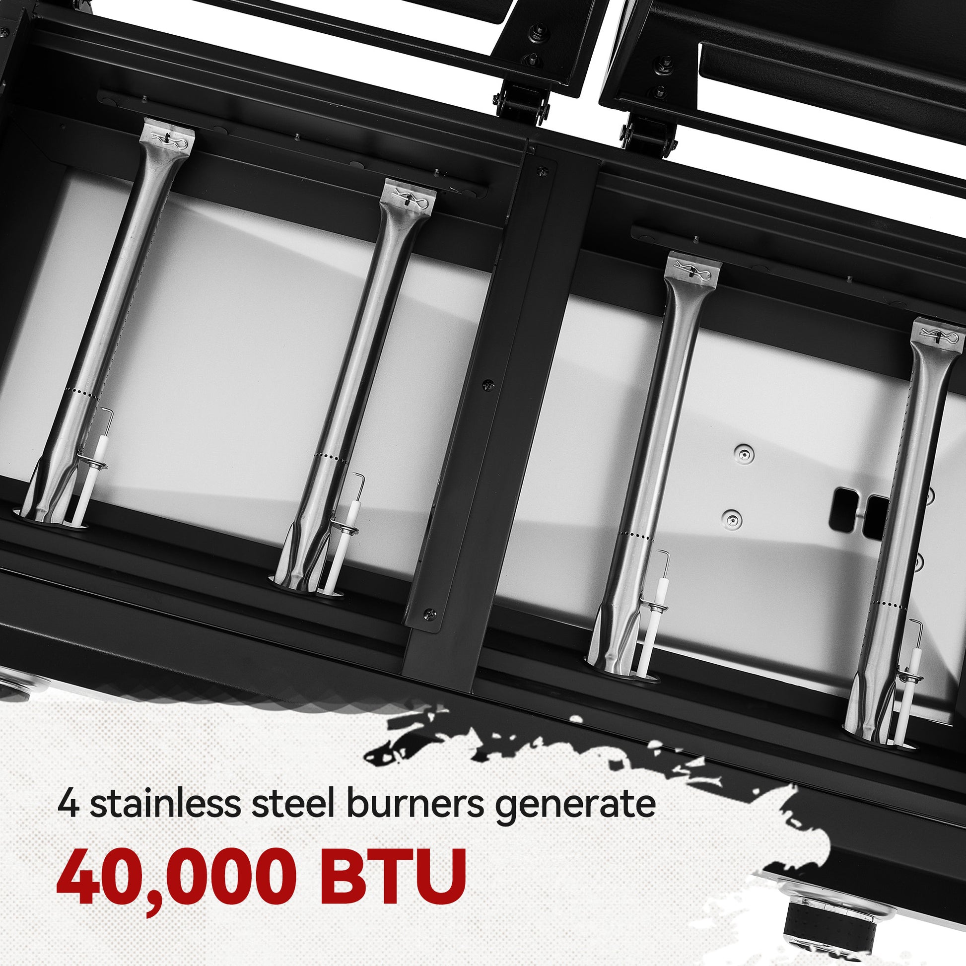 2.Powerful Performance: 4 independently controlled stainless steel burners generate 40,000 BTU (10,000 BTU each) performance totally, which evenly distribute heat to 416 sq. in. cooking space for consistent cookout.