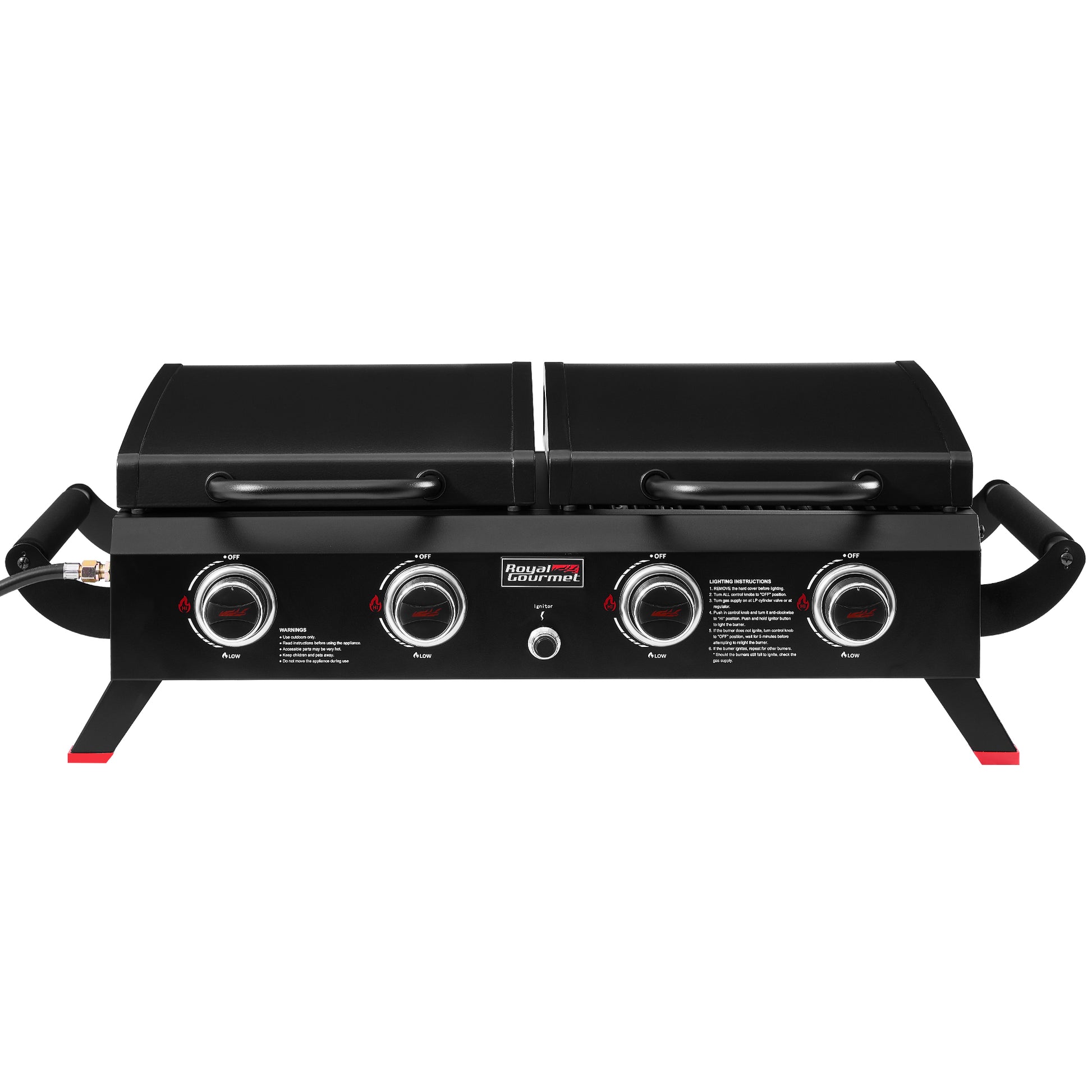 4-Burner Portable Propane Gas Grill Griddle Combo, Black