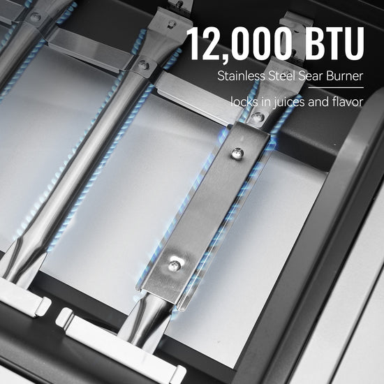 2. Versatile Cooking Power: Four 10,000 BTU main burners handle your core dishes, a 12,000 BTU sear burner delivers high heat for steakhouse-style searing, and a 9,000 BTU side burner adds flexibility for sides or sauces.
