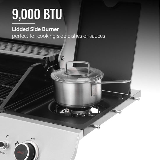 5. A side burner offers 9,000 BTU which is ideal for preparing side dishes