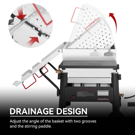 - Convenient drainage option: after cooking, place the stirring paddle in two different positions to adjust the height, lift the basket and drain the excess water