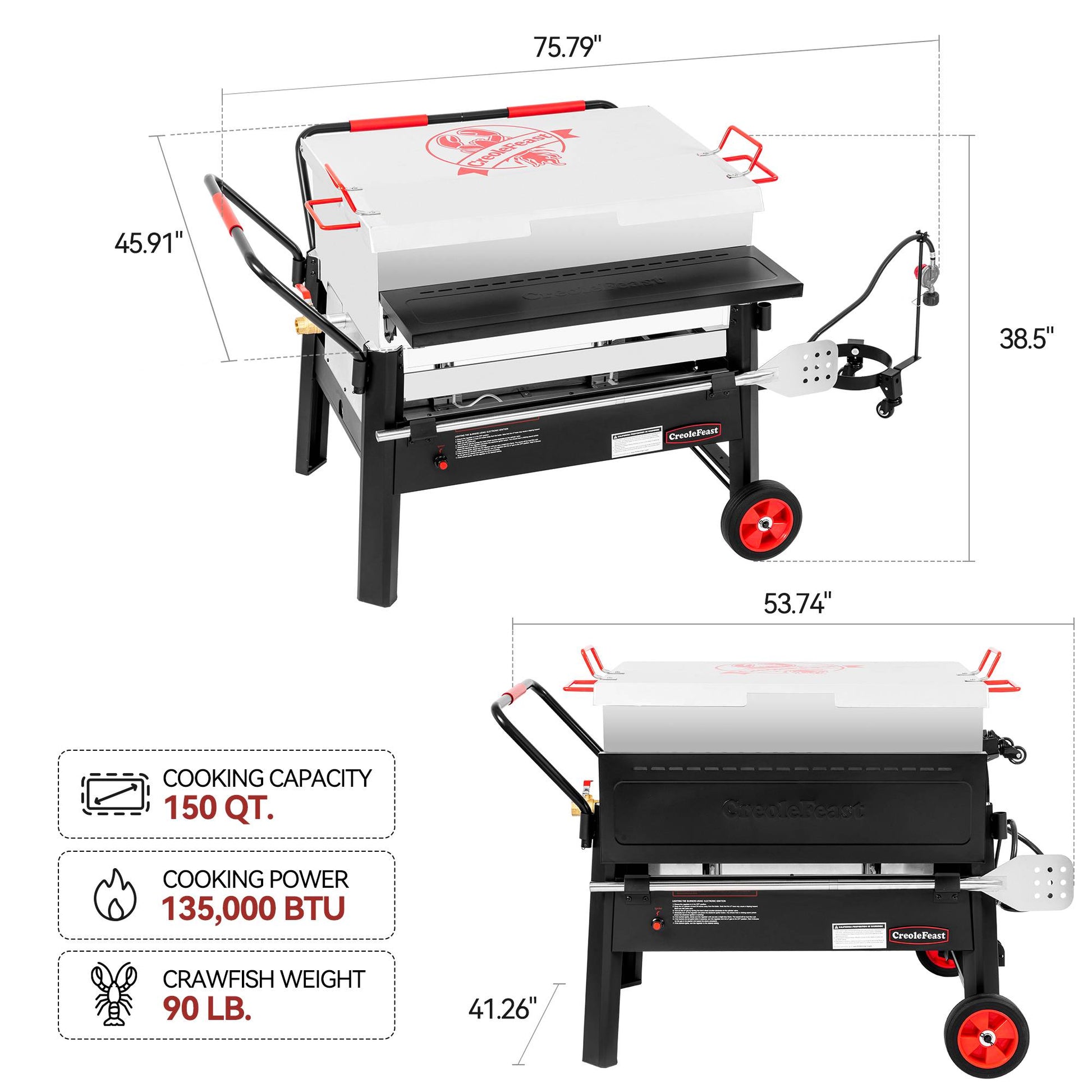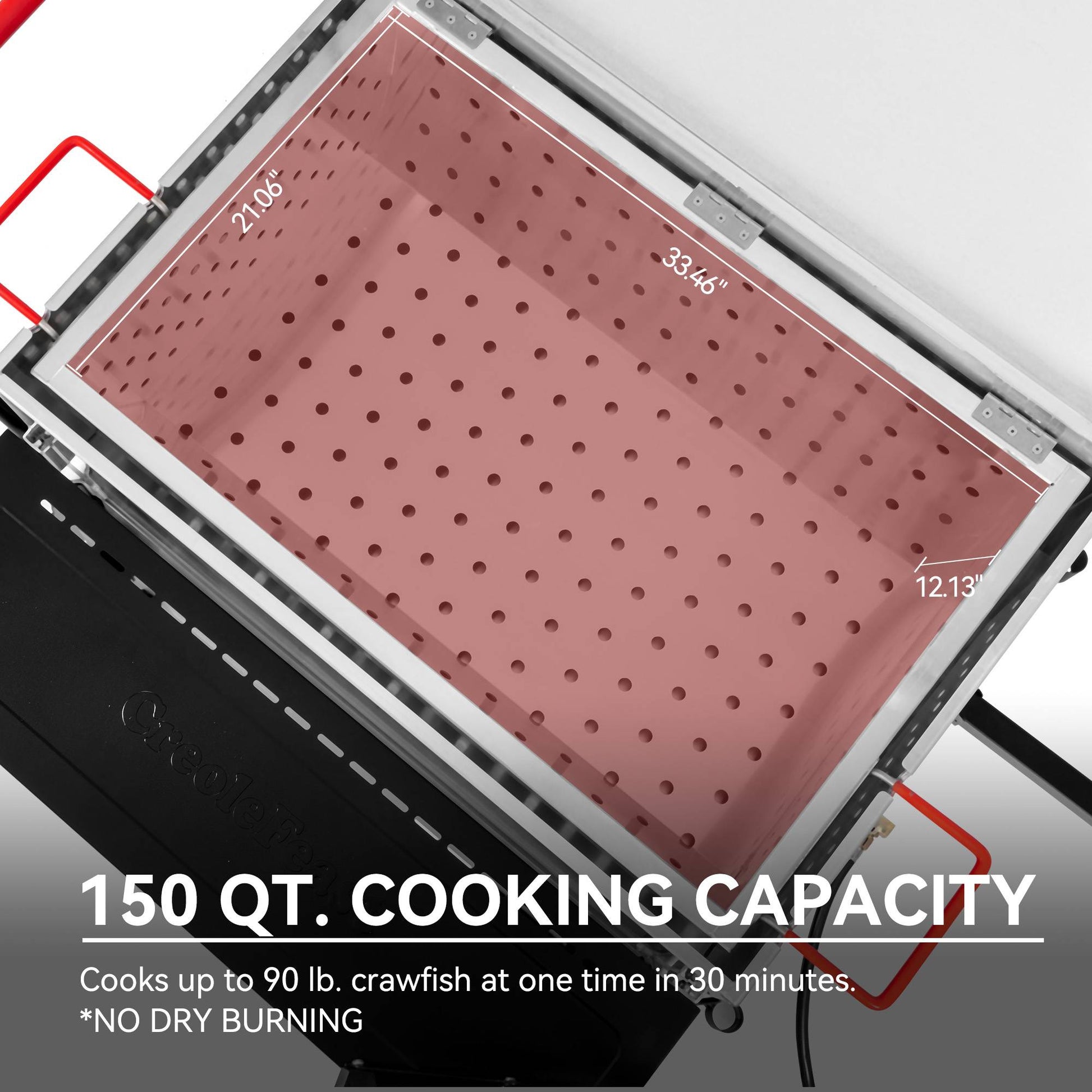 2.Cook up a Storm: Cooks up to 90 lb. crawfish plus other ingredients at a time with 150 qt. cooking capacity in 30 minutes.