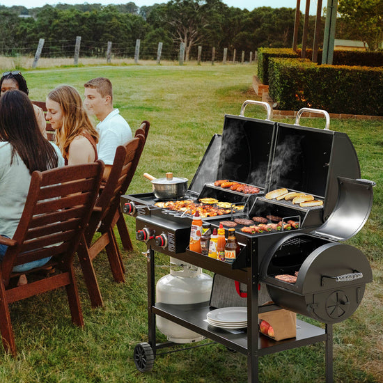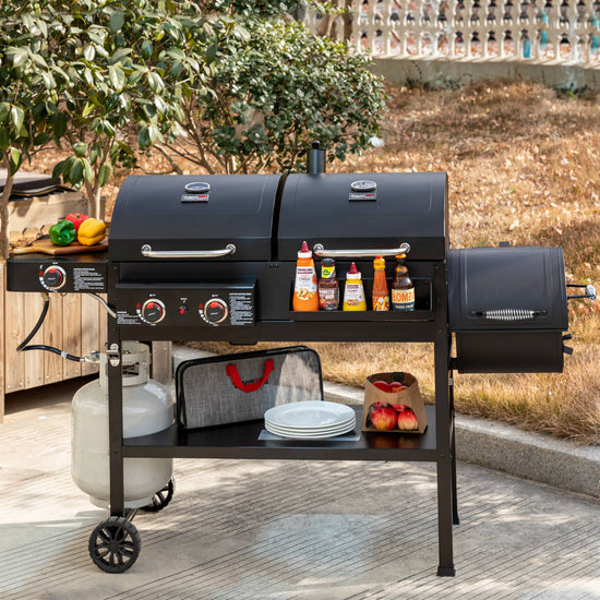 Royal Gourmet ZH3005Y 2-Burner Gas and Charcoal Combo Grill with Offset Smoker & Side Burner is an excellent option for you to take care of almost all your cooking needs. It combines the convenience of gas grill, the impressive charcoal flavor of charcoal grill, the unique smoky flavor of smoker, and added versatility for cooking sides within one solid built. If you are really into smoked foods, this combo grill with offset smoker is for you. Even if youve got family or friends that dont like smoke flavor, this combo grill with versatile cooking options can still suit everyone at the same time. It is meant to expand your grilling repertoire and impress your guests with mouth-watering meals and rich flavor. No more hesitation. With Royal Gourmet ZH3005Y, embrace the vast versatility and convenience.