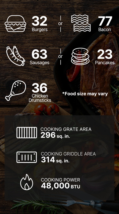 The grates and griddle can be exchanged with each other, giving you more options for cooking different types of food.