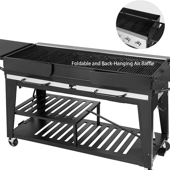 4. Folding Design: Three wind deflectors on each side of the cooking area are easy to fold down, and two folding side tables offer ample food preparation work space.