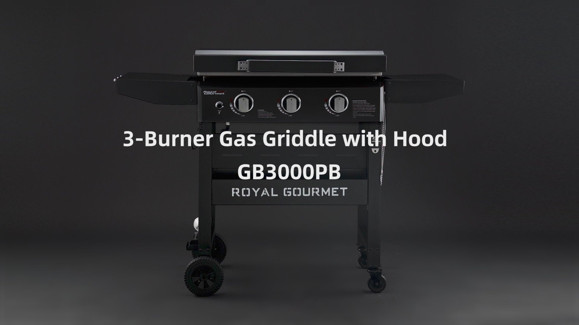 Royal Gourmet, Griddle with Collapsible Side Shelves, 3-Burner Gas Griddle with Hood, Black